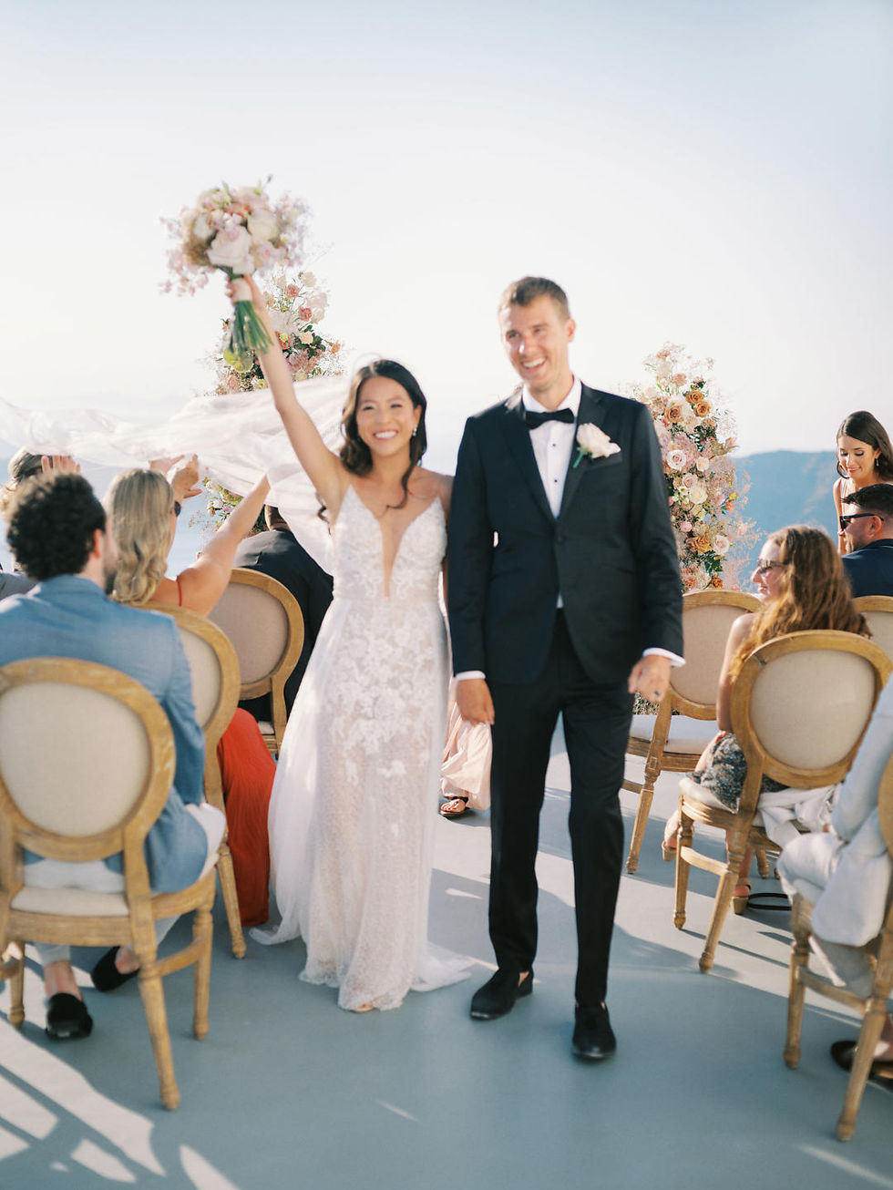 Bianca and Tim’s wedding at the Grace Hotel in Santorini was a breathtaking celebration of love set high above the sparkling Aegean Sea. Traveling from Pennsylvania, USA, the couple brought their dream of a sun-soaked, destination wedding to life in one of the world’s most romantic settings. With iconic white-washed architecture, endless ocean views, and the golden glow of the Santorini sunset, their day was nothing short of magical. Surrounded by loved ones, Bianca and Tim exchanged vows on a serene terrace overlooking the caldera, creating unforgettable memories in a place as timeless and beautiful as their love story.